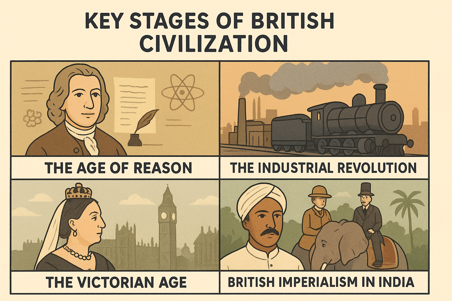 Overall, the course provides a structured overview of how ideas, industry, social change, and empire contributed to Britain’s development into a modern nation.
